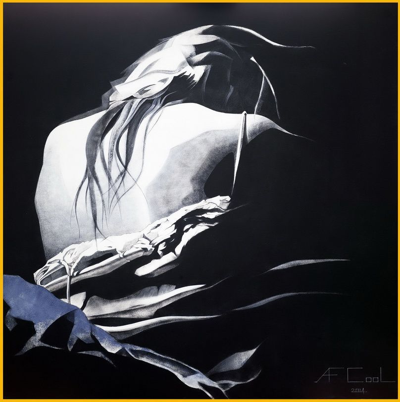 Capturer un sentiment à travers un mouvement animé par le reflet d’un corps, dont le prolongement est textures, couleurs, brillances et ombres. Voilà ce qui définit ma peinture et en particulier les portraits qui en font un voyage au cœur de mes émotions.
